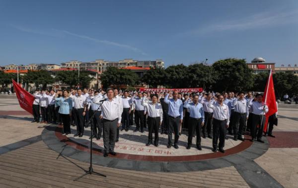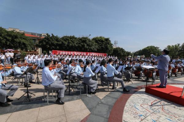 “红军都是钢铁汉,千锤百炼不怕难……官兵一致同甘苦,革命理想高于天。”4月30日,在于都县中央红军长征出发纪念碑广场前,伴随着歌曲《过雪山草地》的激昂旋律,来自江西师范大学的百名师生通过奏唱红色歌曲、向革命烈士敬献花篮,重温百年党史,弘扬长征精神,缅怀革命先烈,凝聚奋进力量。