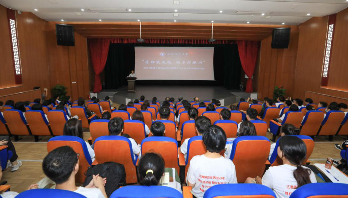 202175日上午,江西师范大学在红色文化教育馆二楼红色影院举行2021年“寻红色足迹 助乡村振兴”百个红色名村行暑期“三下乡”社会实践出征仪式。校党委书记黄恩华,校党委委员、副校长刘俊,校党委委员黄保文出席仪式,相关职能部门负责人、学院相关负责人、全体专职团干、各学院学生代表参加。