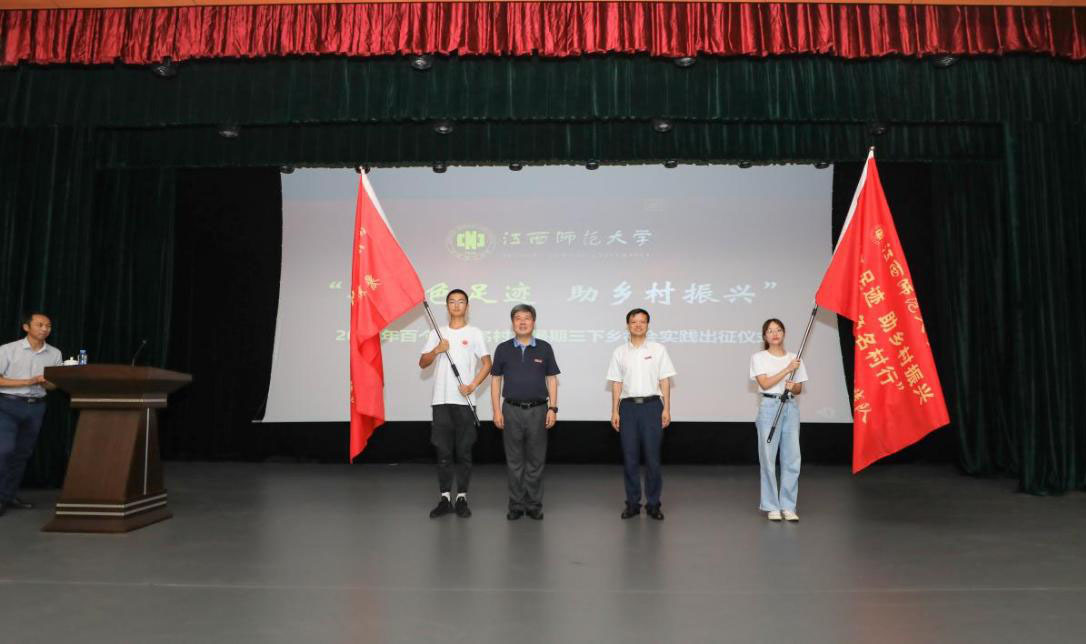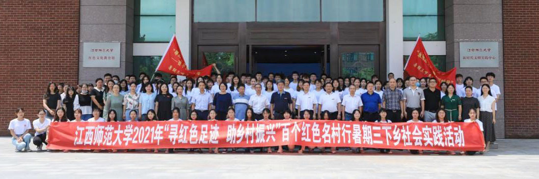 2021年7月5日上午,江西师范大学在红色文化教育馆二楼红色影院举行2021年“寻红色足迹 助乡村振兴”百个红色名村行暑期“三下乡”社会实践出征仪式。校党委书记黄恩华,校党委委员、副校长刘俊,校党委委员黄保文出席仪式,相关职能部门负责人、学院相关负责人、全体专职团干、各学院学生代表参加。