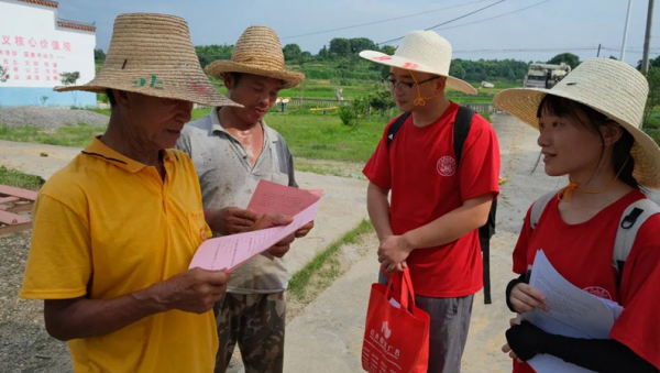井冈山茅坪镇茅坪村,大二学生陈思源和同学们正在老房子墙上的红色标语前忙碌着。红色标语是革命历史的“活化石”,是红色基因传承的载体。在“红色走读”中,同学们发现标语因岁月流逝而变得模糊,决定用AI技术在电脑上修复红色标语。陈思源所在团队走了10个村落,收集了600余条红色标语,修复了141条。一条条红色标语,跨越时空在新时代大学生手里清晰再现。樟树市店下镇,政法学院社会实践队精心制作了“乡村振兴”宣传册,围绕党和国家重大理论政策、乡村移风易俗、家风建设等方面开展宣传和调研,积极宣传法律知识,引导村民做“法律明白人”,推动法治乡村建设。在浮梁县鹅湖镇,文学院社会实践队开展“青春筑梦,同心向党”小篆课堂,与当地小学生一起领略汉字的魅力。