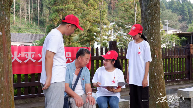 井冈山市小井村,江西师范大学红歌调研队的同学们正在对红歌的传承现状进行调研。